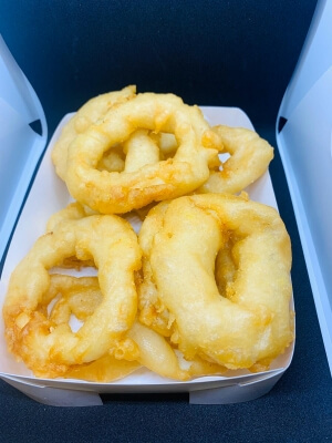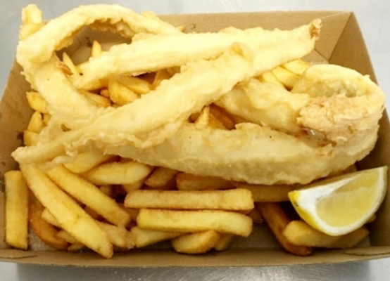 8 Fish Cocktail, 8 Calamari, 2 Seafood Sticks, 2 Prawns Cutlets, Medium chips with large sauce