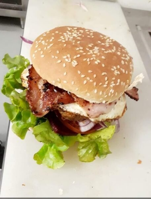 Lettuce, Tomato, Beetroot, Onion And meet patties , Bacon, Egg, Pineapple and Cheese choose any sauce